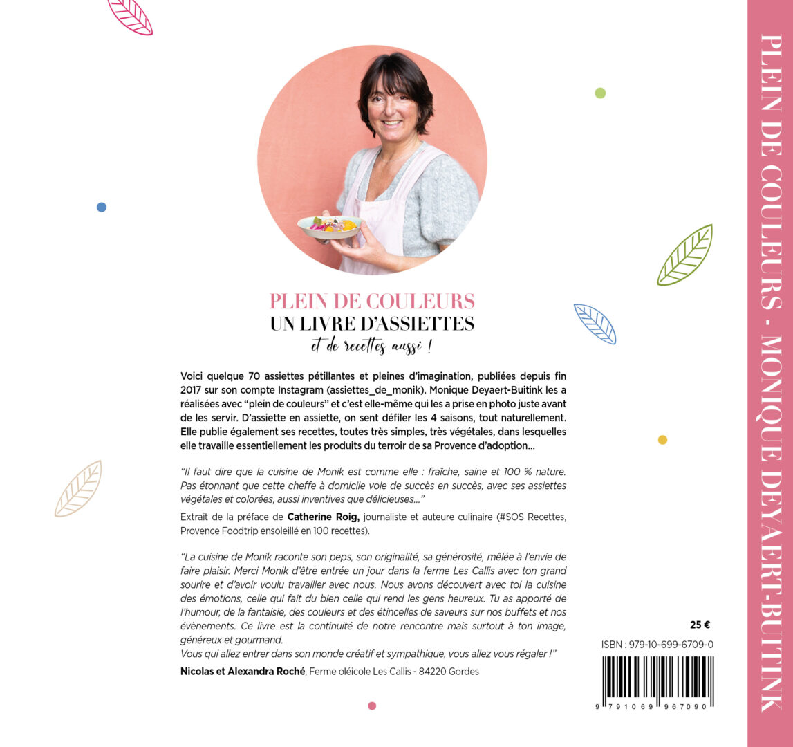 “La cuisine de Monik raconte son peps, son originalité, sa générosité, mêlée à l’envie de faire plaisir. Merci Monik d’être entrée un jour dans la ferme Les Callis avec ton grand sourire et d’avoir voulu travailler avec nous. Nous avons découvert avec toi la cuisine des émotions, celle qui fait du bien celle qui rend les gens heureux. Tu as apporté de l’humour, de la fantaisie, des couleurs et des étincelles de saveurs sur nos buffets et nos évènements. Ce livre est la continuité de notre rencontre mais surtout à ton image, généreux et gourmand.